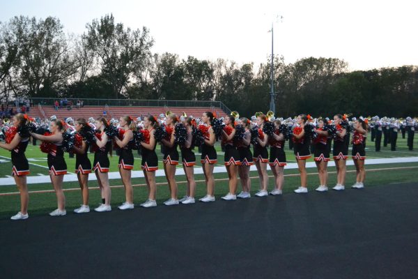 Cheerleaders stand together for National Anthem