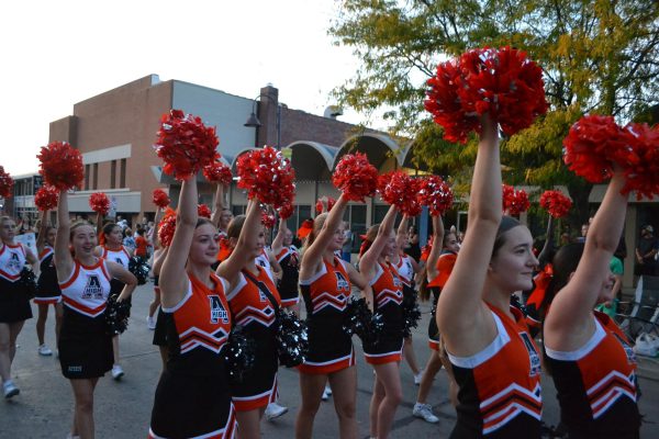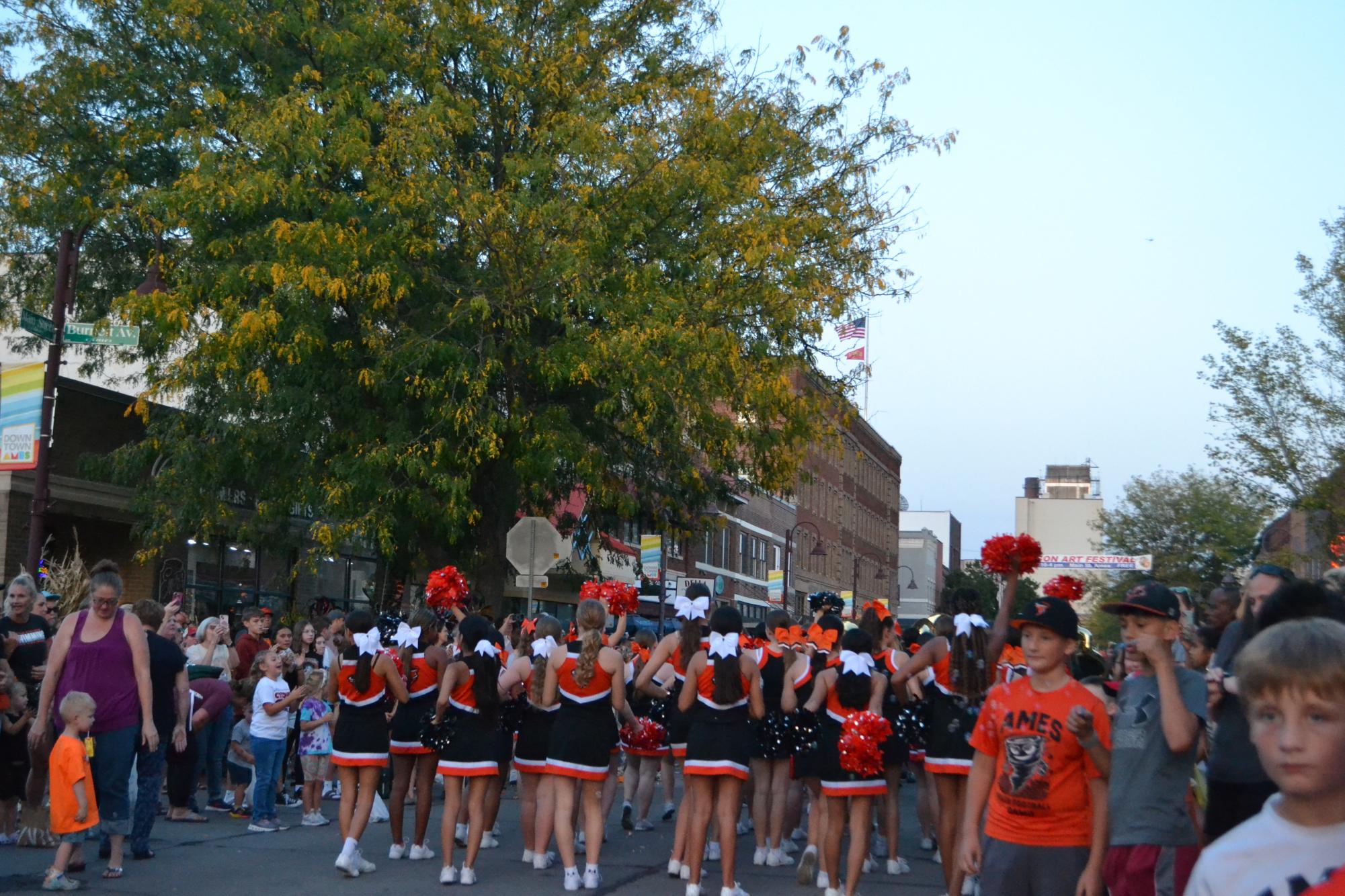 Ames high cheerleaders pass through mainstreet.