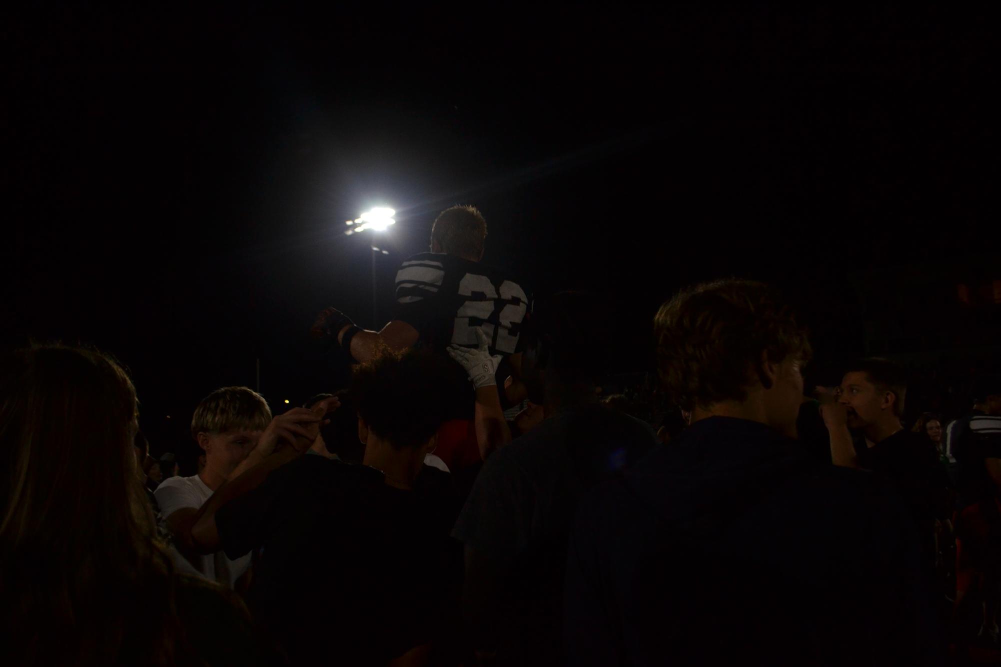 Braxtyn Brown is lifted up by fellow students and recognized as a MVP this game