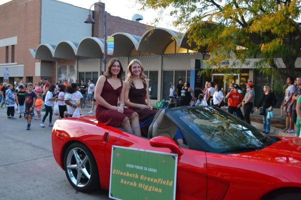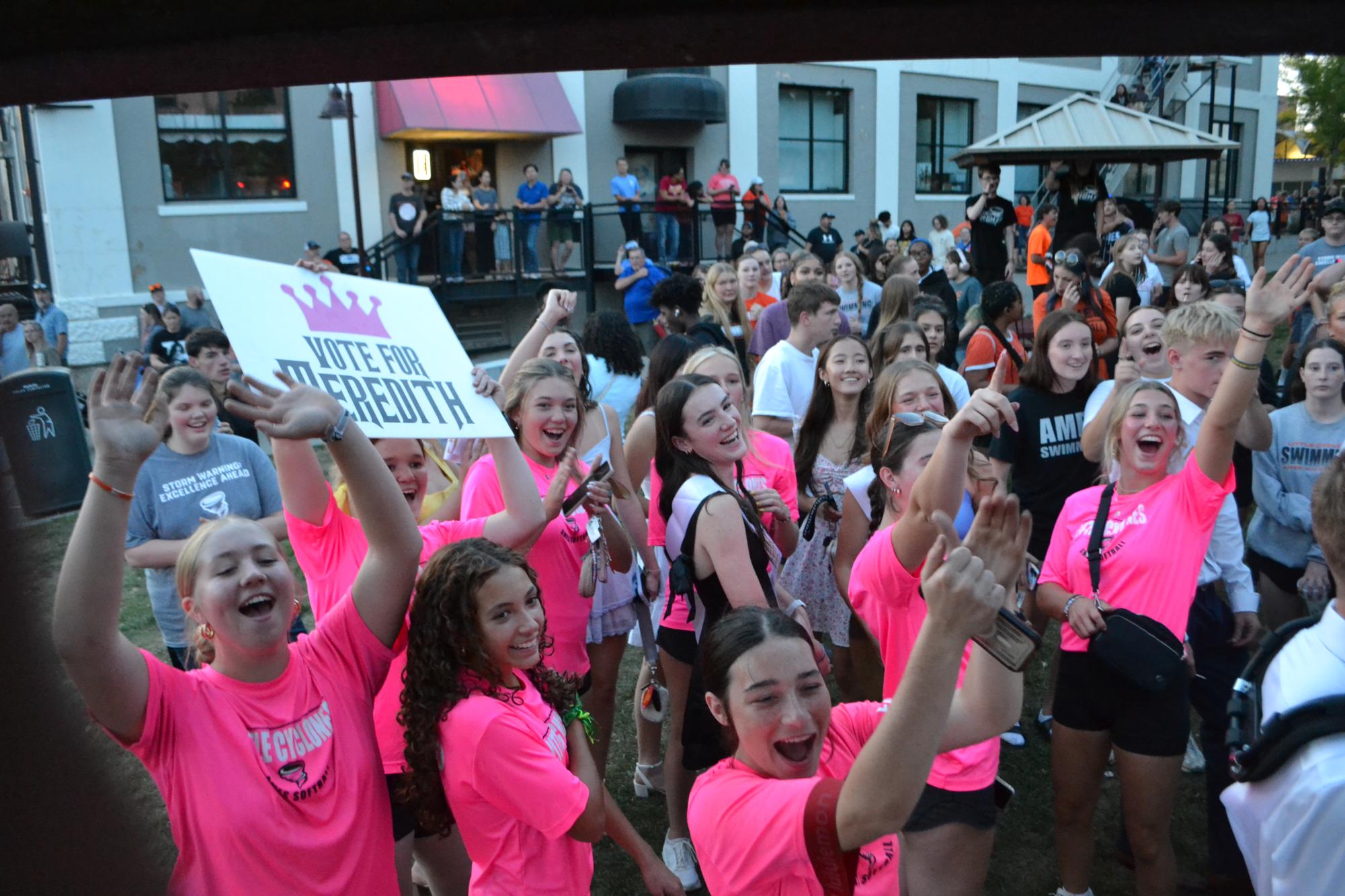 Members of the Ames High homecoming court pass through smiling and waving! However, keeping their fingers crossed for the win of becoming a member of the homecoming royalty.