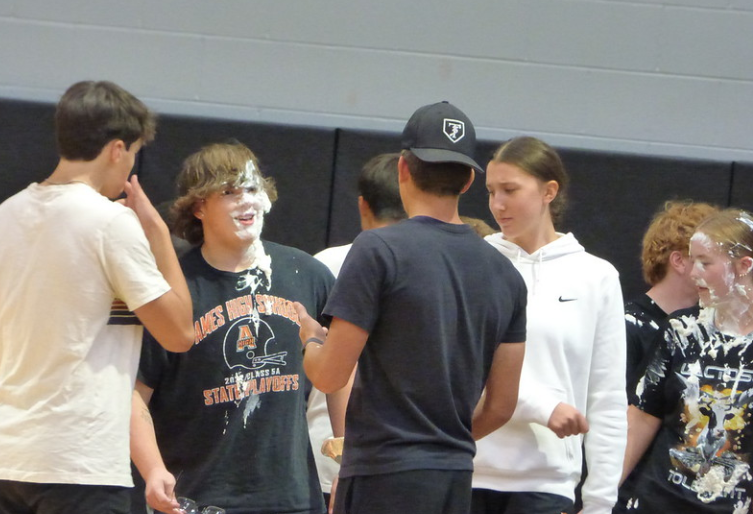 Senior Dayne Hayes is piedThe group of seniors laugh and talk together after getting piedOur homecoming royals are announced! Prince and princess are Natalya Deardorf and Evan Nelson. Our king and queen are the one and only Meredith Frandsen as well as Zachary Loecke.
